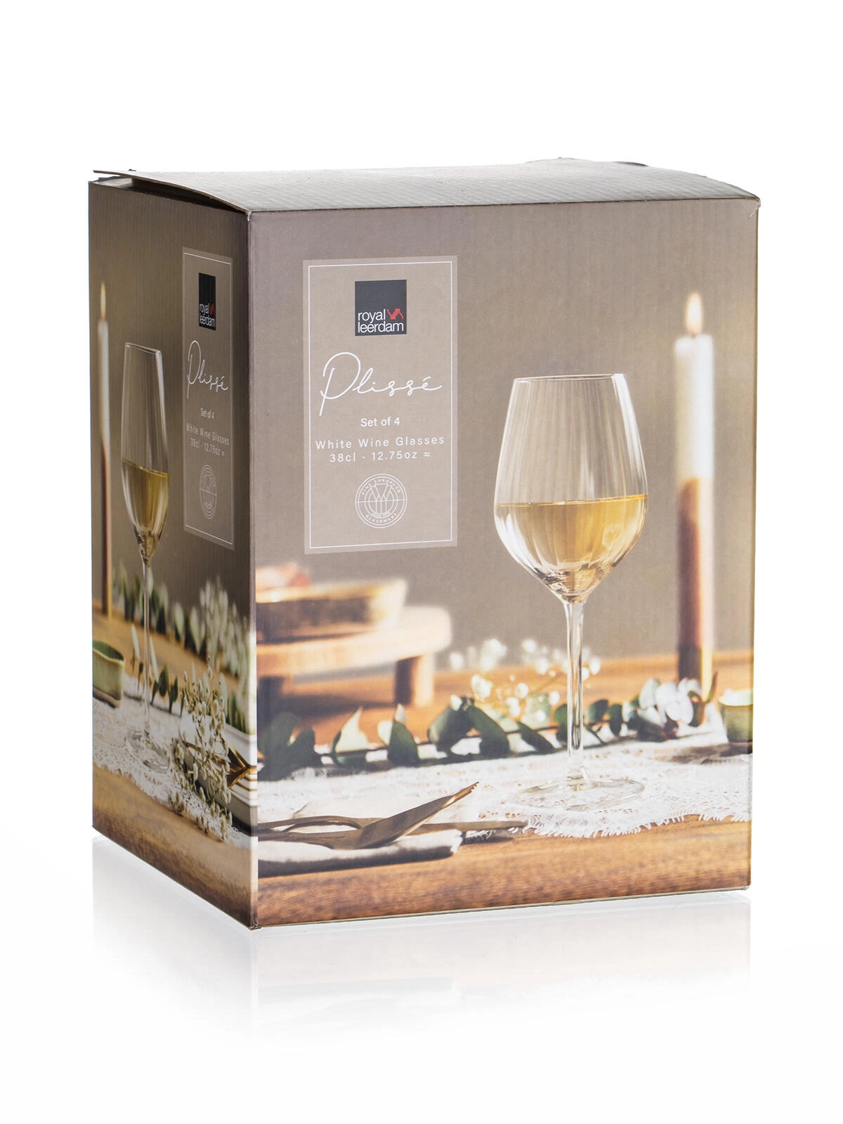Paharele elegante pentru vin alb, cu un volum de 380 ml, din colecția Plissé de la ROYAL LEERDAM, aduc un design modern cu o nervură fină care evidențiază aspectul băuturii. Datorită marginii întărite sunt rezistente și potrivite pentru utilizare zilnică, în timp ce pereții subțiri și forma cupei concentrează excelent aroma. Pachetul conține 4 bucăți de sticlă de calitate, producție olandeză.