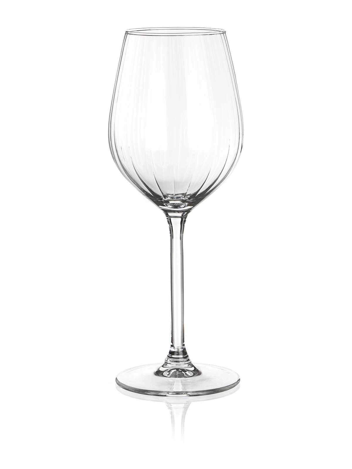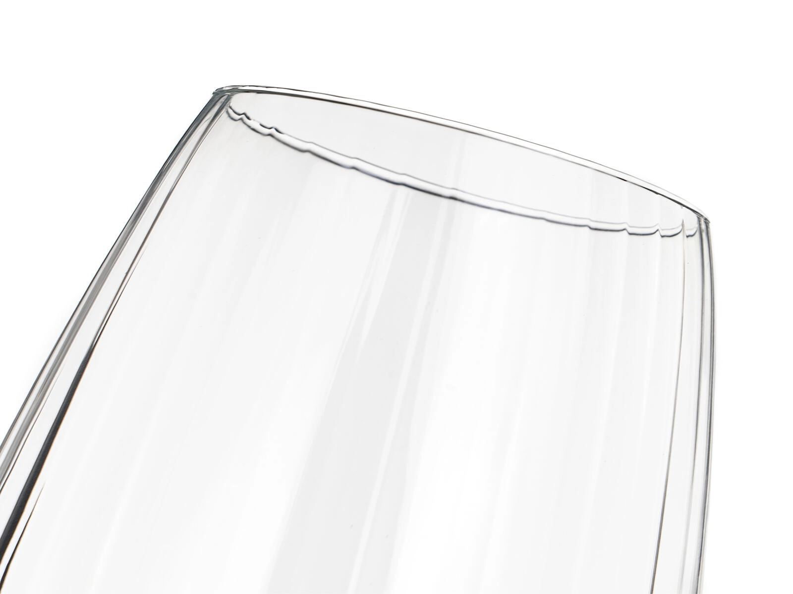 Cupa cu nervură fină susține concentrarea aromelor și evidențiază caracterul vinurilor albe.