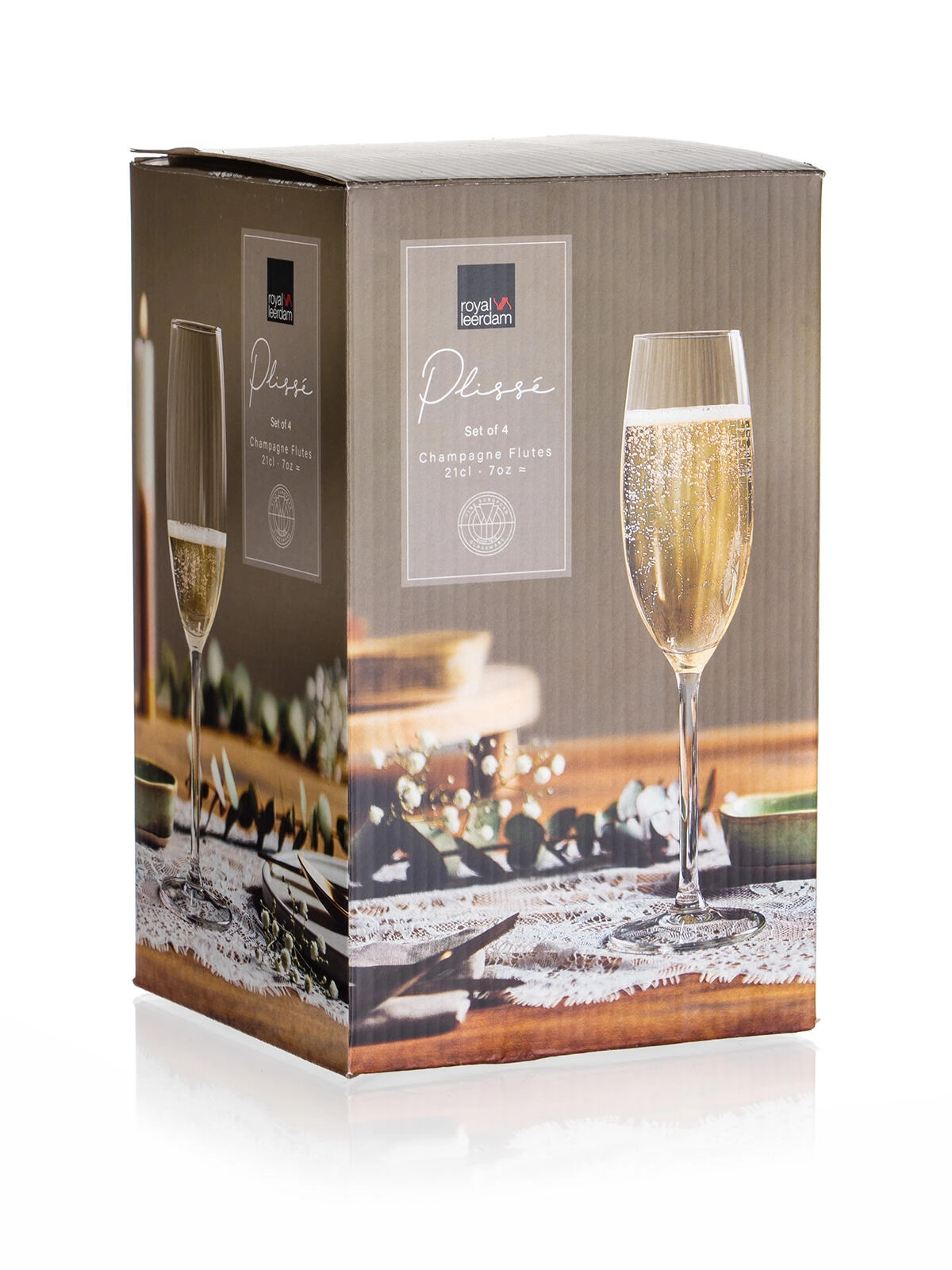 Paharele ROYAL LEERDAM Plissé sunt concepute pentru servirea perfectă a șampaniei și a altor vinuri spumante. Corpul suplu ajută la păstrarea perlarii fine și a prospețimii aromelor, în timp ce liniile curate și sticla cristalină evidențiază elegant culoarea băuturii.
