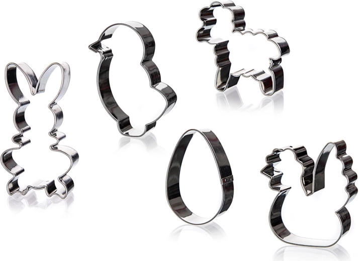Descoperiți practicul set de forme de decupat Culinaria pentru coacerea ușoară a biscuiților și turtelor dulci. Setul conține 5 forme de Paște – puișor, ou, găinușă, iepuraș și oiță. Formele sunt realizate din oțel inoxidabil de calitate pentru durată lungă de viață și întreținere facilă.