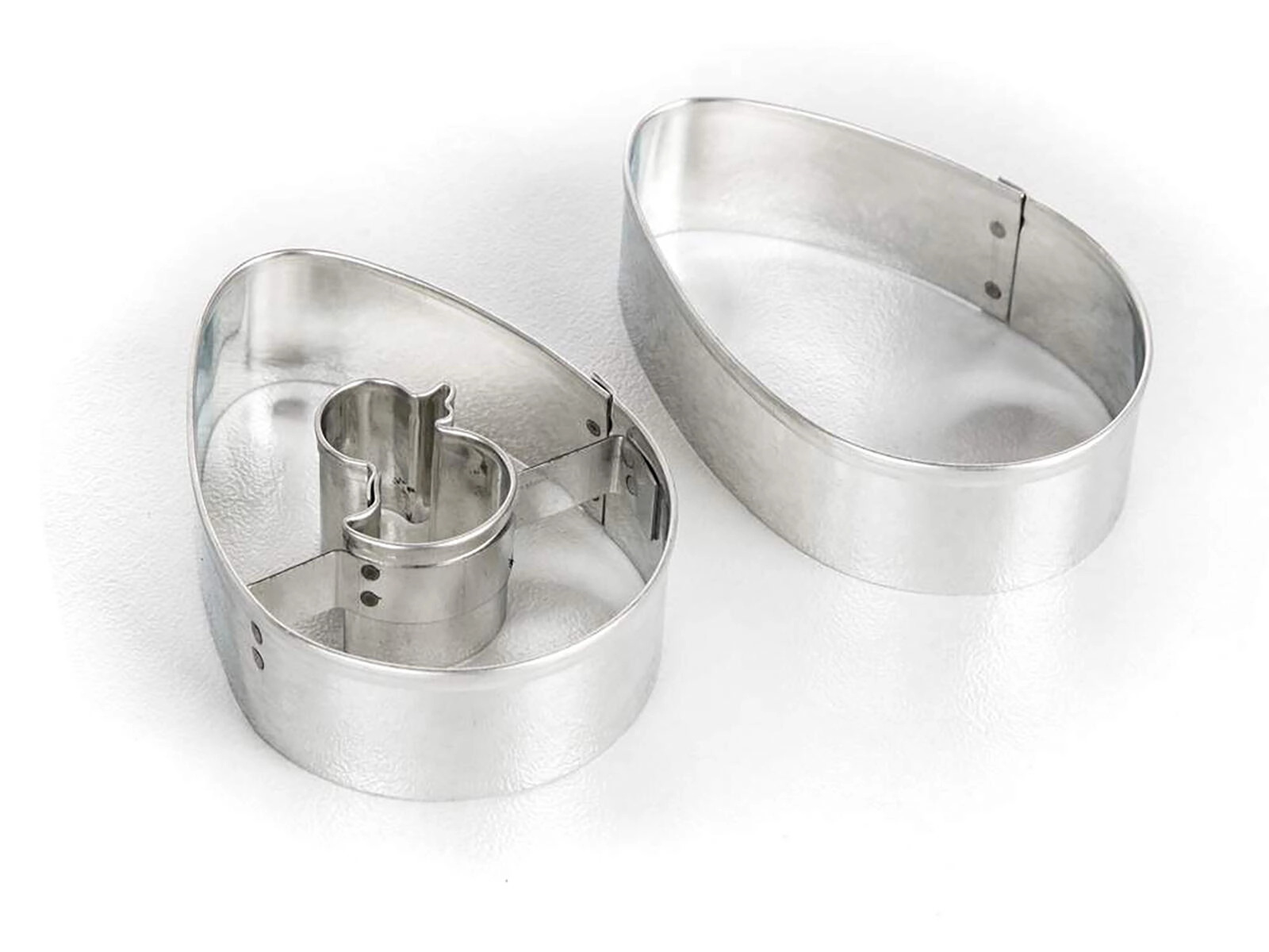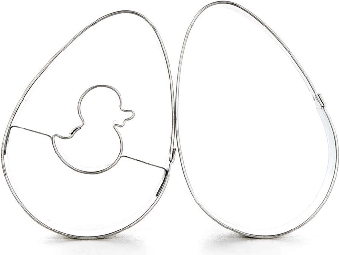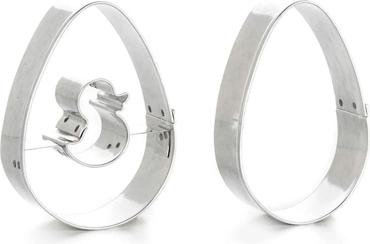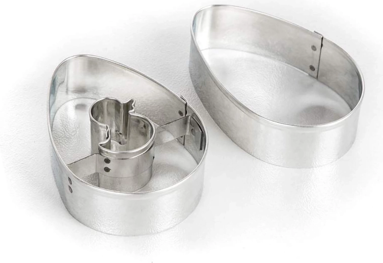 Descoperiți setul practic de forme pentru biscuiți în formă de ou, ideal pentru coacerea de Paște și pe tot parcursul anului. Setul oferă un ou simplu, neted și un ou cu decupaj central în formă de puișor pentru decorări jucăușe. Formele din tablă cositorită asigură contururi precise și o durată de viață îndelungată.