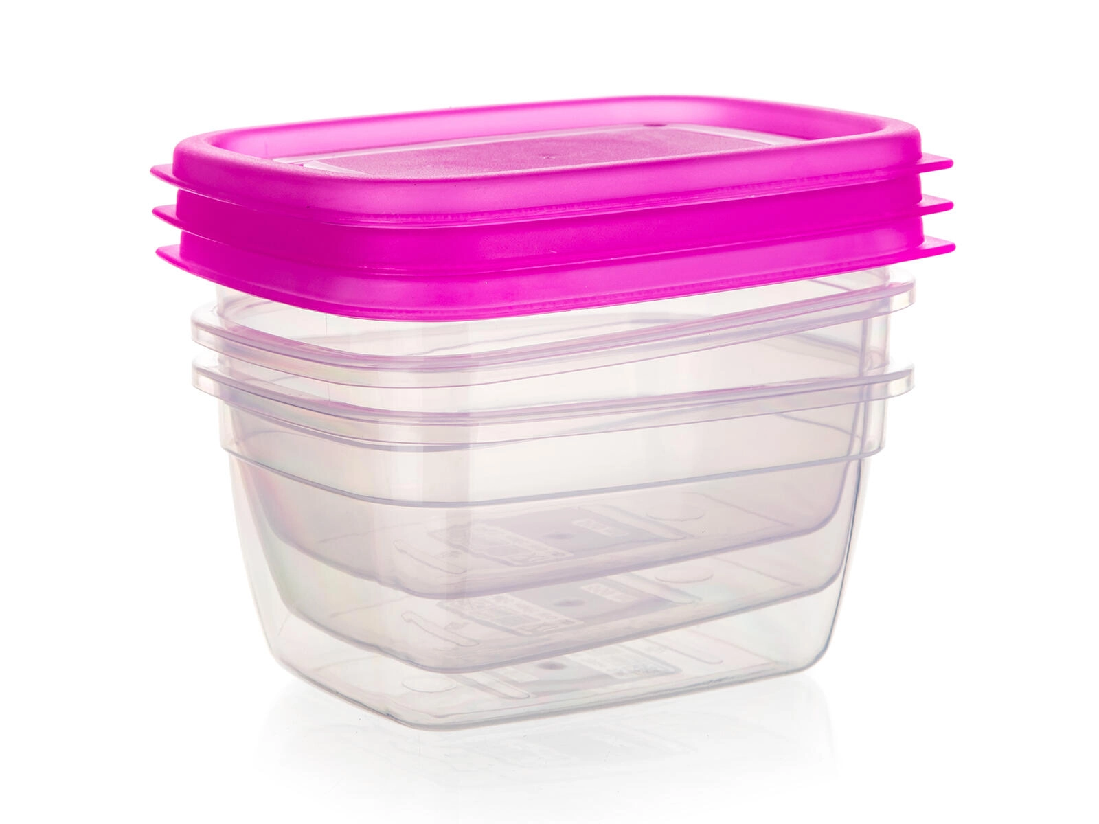 Acest set compact de cutii este ideal pentru păstrarea resturilor de mâncare, gustărilor, fructelor sau legumelor tăiate. Pereții transparenți permit verificarea instantanee a conținutului, iar capacele roz cu clipsare ușoară mențin totul închis în siguranță.