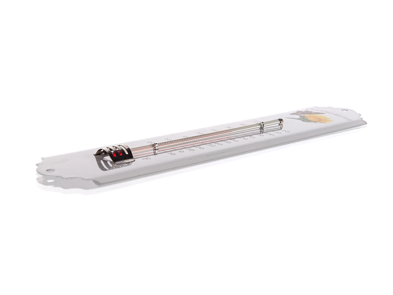 Capilara din sticlă cu umplutură roșie și imprimarea cu contrast oferă o citire clară a temperaturii. Execuție practică potrivită pentru monitorizarea regulată a climatului.