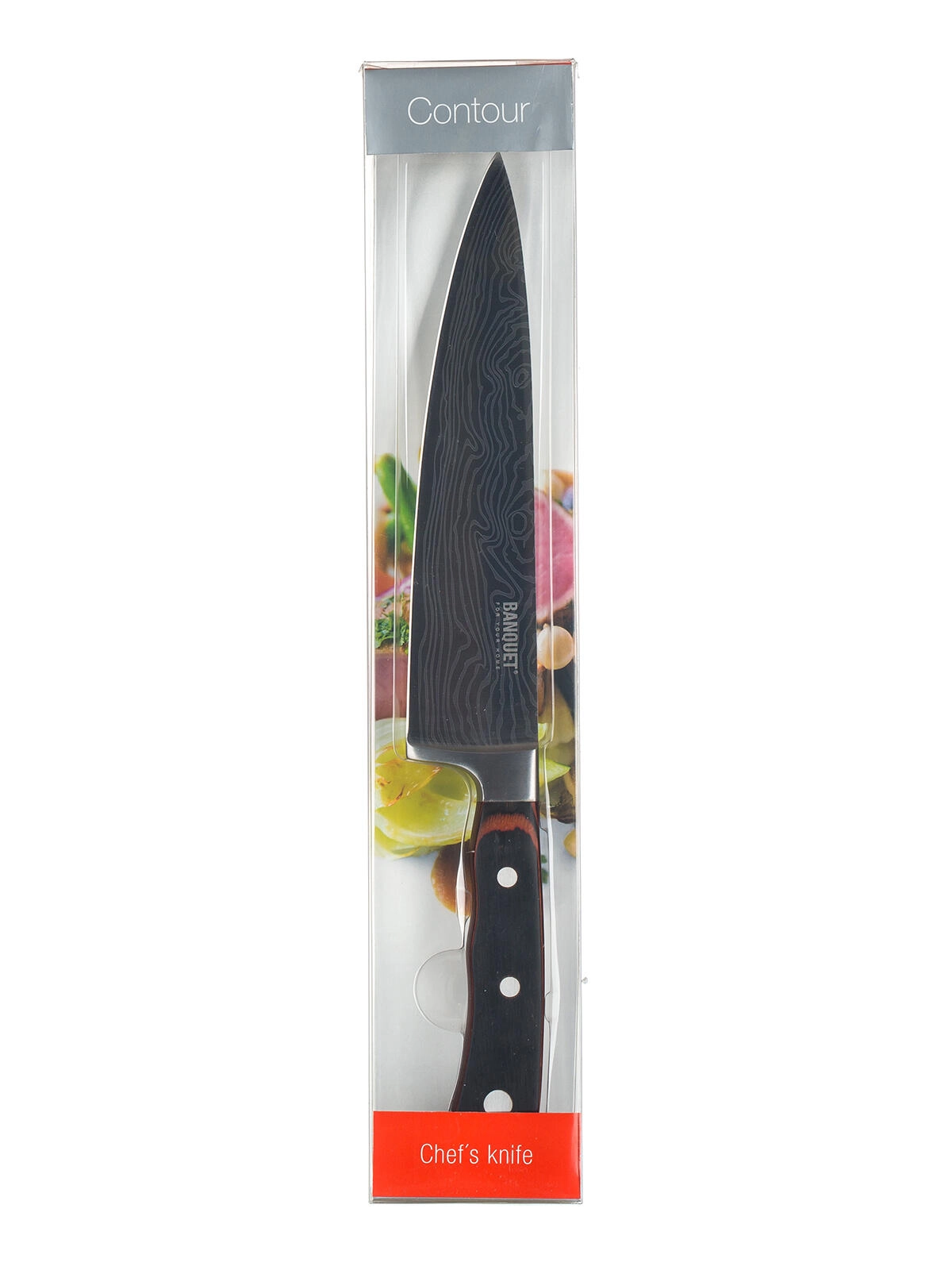 Cuțitul de bucătar Contour este piatra de temelie a oricărei bucătării. Datorită lamei de 20 cm din oțel inoxidabil durabil, face față feliării fine, cubării rapide și chiar tăierii mai solicitante a cărnii și legumelor. Construcția echilibrată susține o mișcare cursivă pe tocător și minimizează oboseala mâinii în timpul lucrului prelungit.