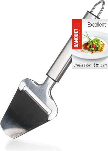 Tăietorul de brânză Excellent cu lungimea de 21,5 cm este un ajutor indispensabil în orice bucătărie. Oțelul inoxidabil rezistent asigură o durată lungă de viață, întreținere ușoară și tăieturi curate fără sfâșiere. Îl veți folosi pentru brânzeturi semitare și tari, iar datorită muchiei ferme veți putea tăia cu ușurință și unt întărit.