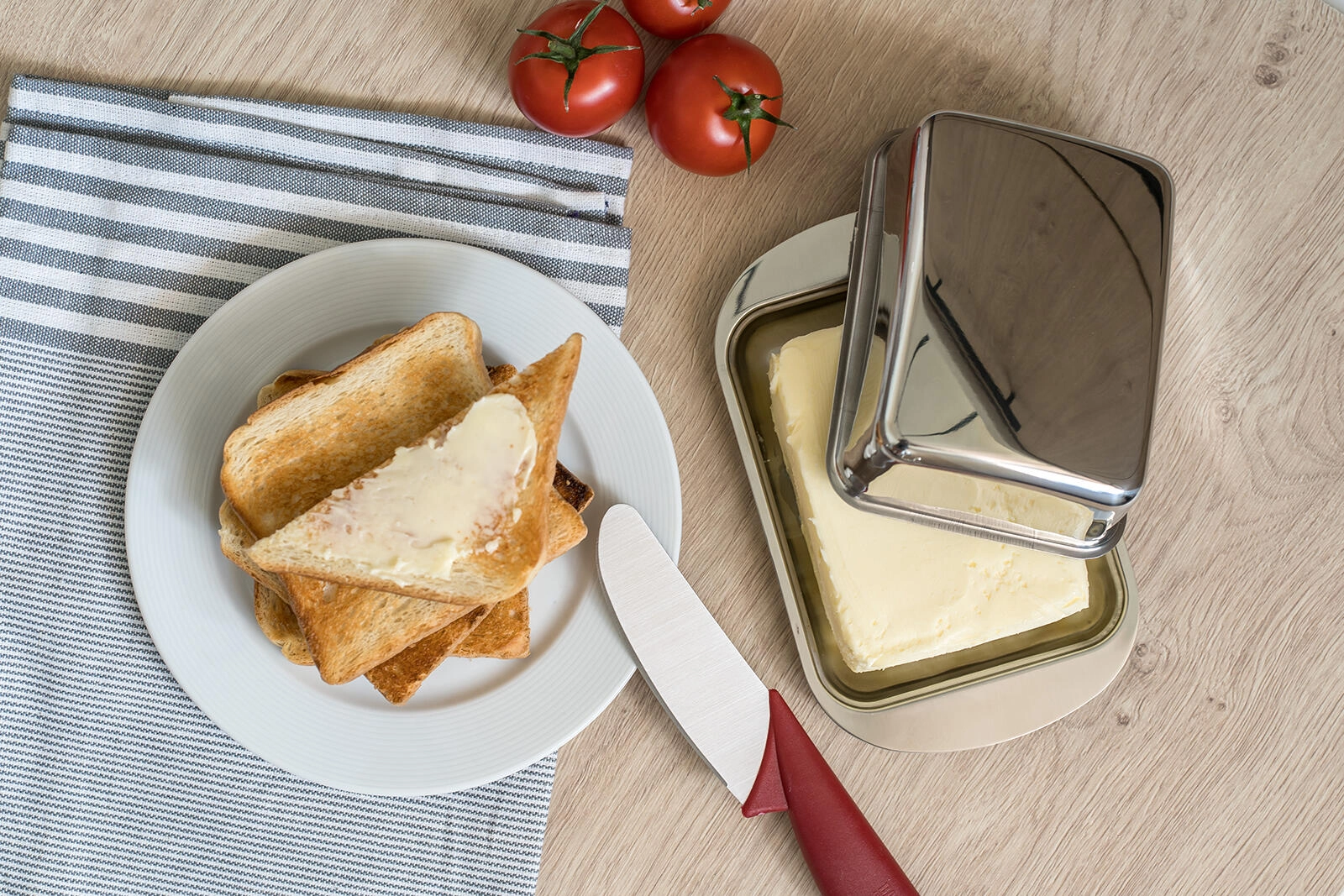 Capacul în formă de dom protejează untul de mirosuri și impurități și îl menține mai mult timp moale și ușor de întins.