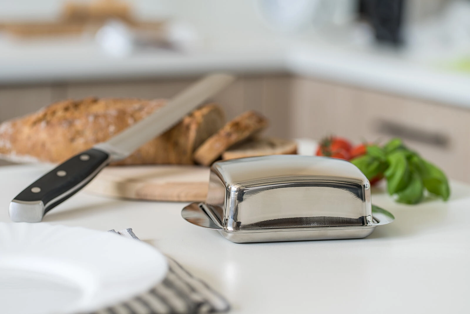 Această untieră stilată din oțel inoxidabil de calitate protejează untul de lumină, mirosuri și uscare. Datorită aspectului atemporal, se potrivește atât bucătăriilor moderne, cât și celor tradiționale și este ușor de întreținut.