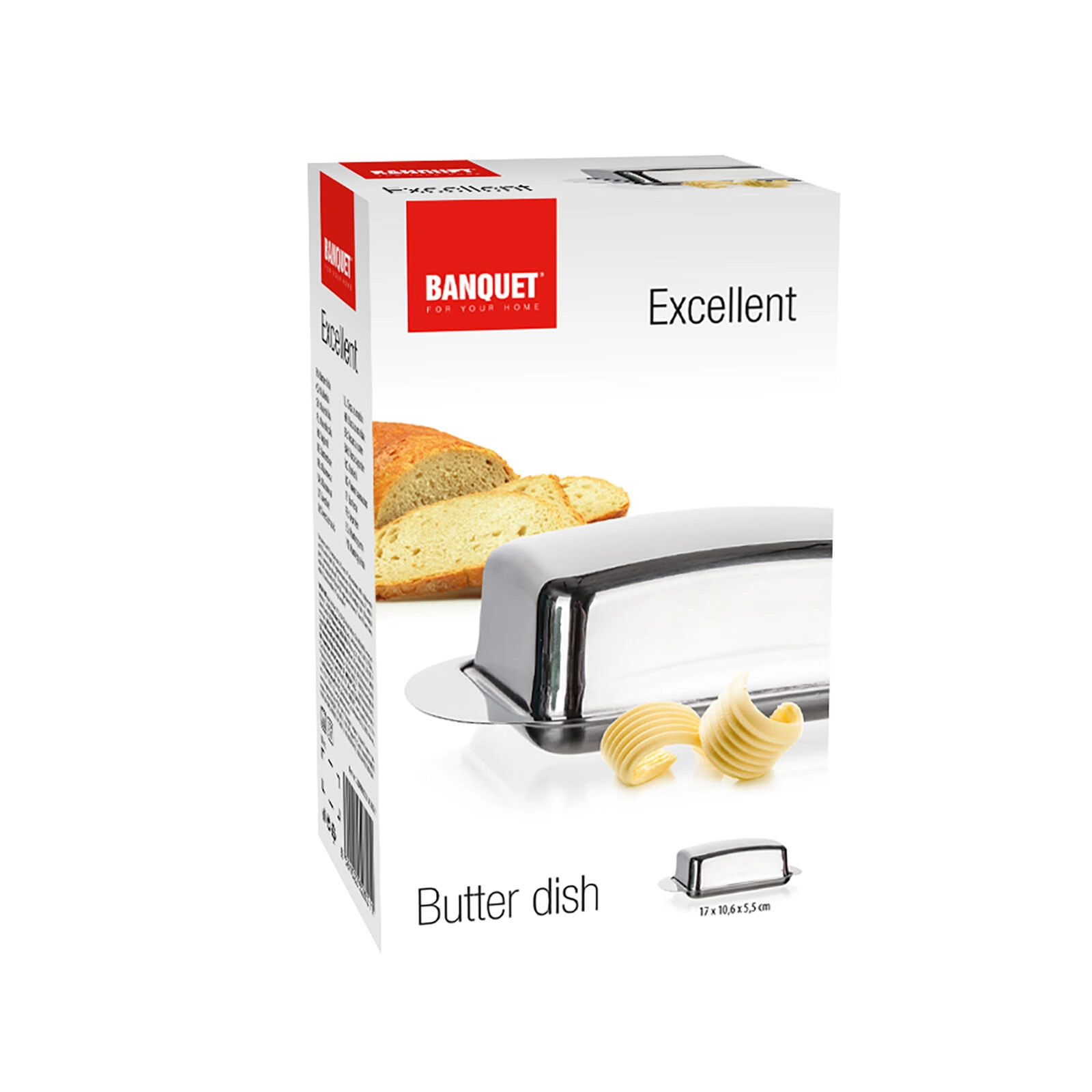 Baza robustă și capacul care se potrivește perfect asigură servirea și depozitarea comode. Dimensiunile de 17 × 10,6 × 5,5 cm sunt ideale pentru un cub standard de unt, astfel încât îl aveți mereu la îndemână – moale, ușor de întins și servit estetic.