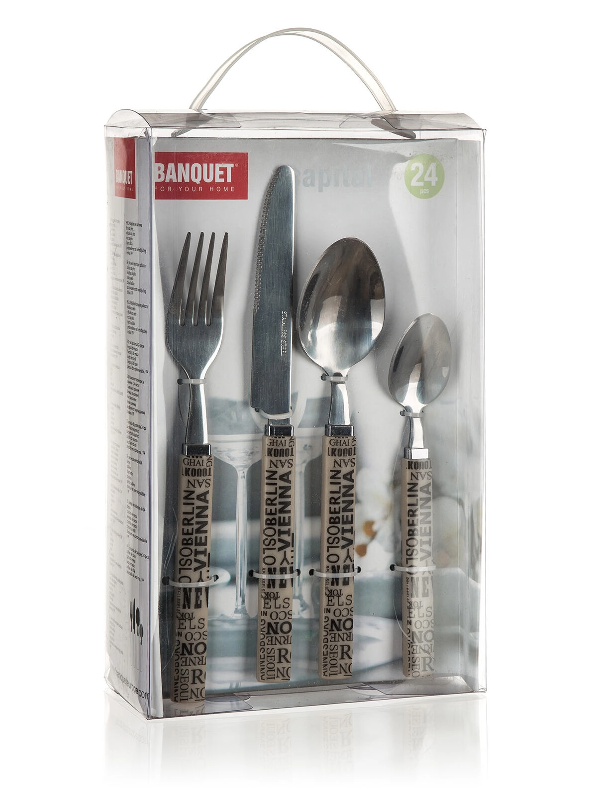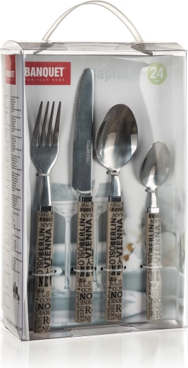 Elegantul set de tacâmuri CAPITAL în set practic de 24 de piese pentru 6 persoane oferă inox 18/0 de calitate cu finisaj lucios și mânere ergonomice din plastic cu decor. Ideal pentru mesele zilnice și pentru ocazii speciale.