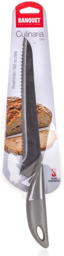 Cuțitul de pâine CULINARIA Grey, cu lamă de 20 cm, este conceput pentru tăierea ușoară și curată a pâinii proaspete sau toast. Lama din oțel de calitate asigură durabilitate și o tăietură precisă, iar mânerul ergonomic din plastic oferă o prindere confortabilă și sigură.