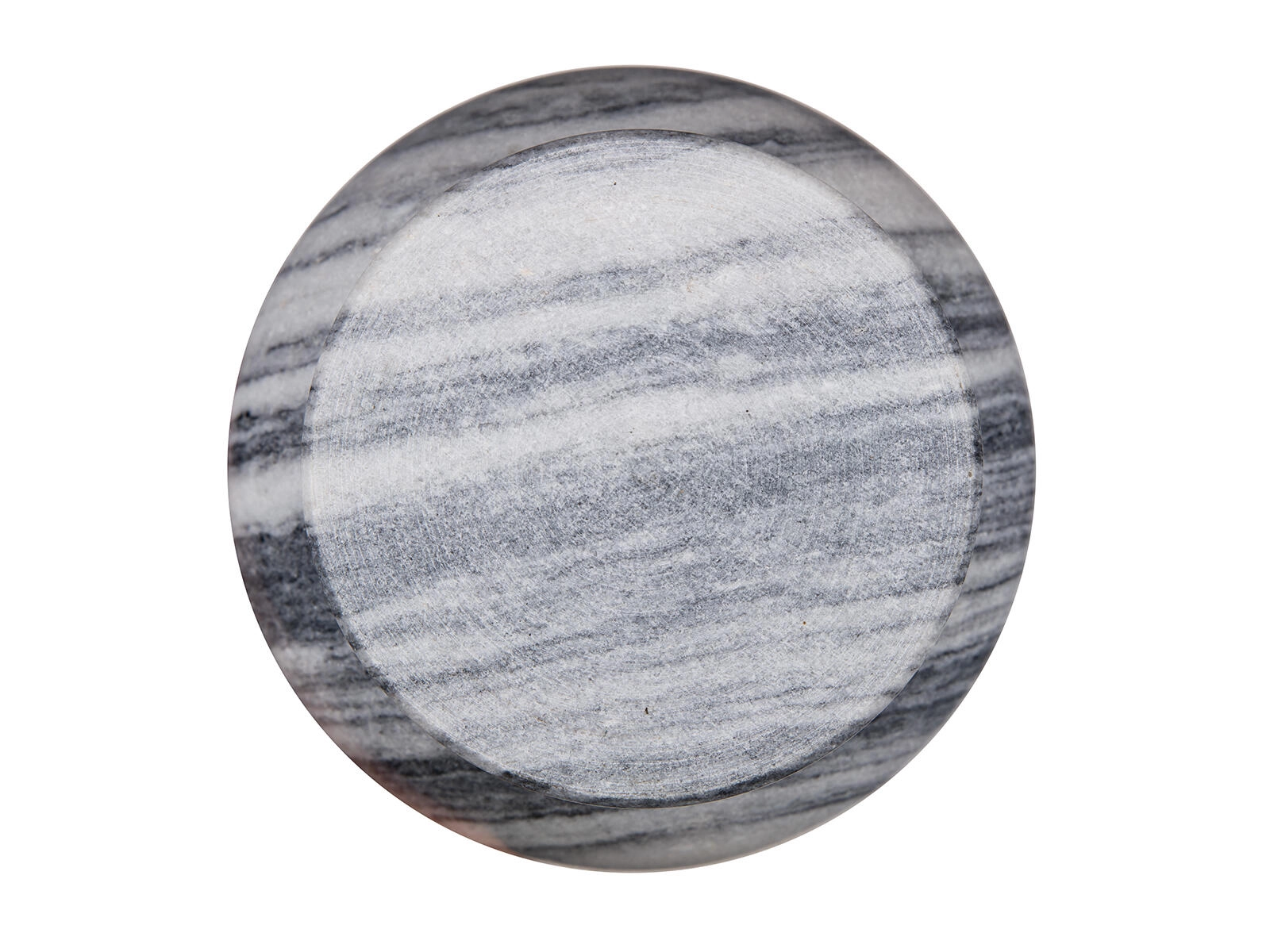 Nervurile naturale ale marmurei transformă mojarul nu doar într-o unealtă practică, ci și într-o decorațiune elegantă pentru blatul din bucătărie.