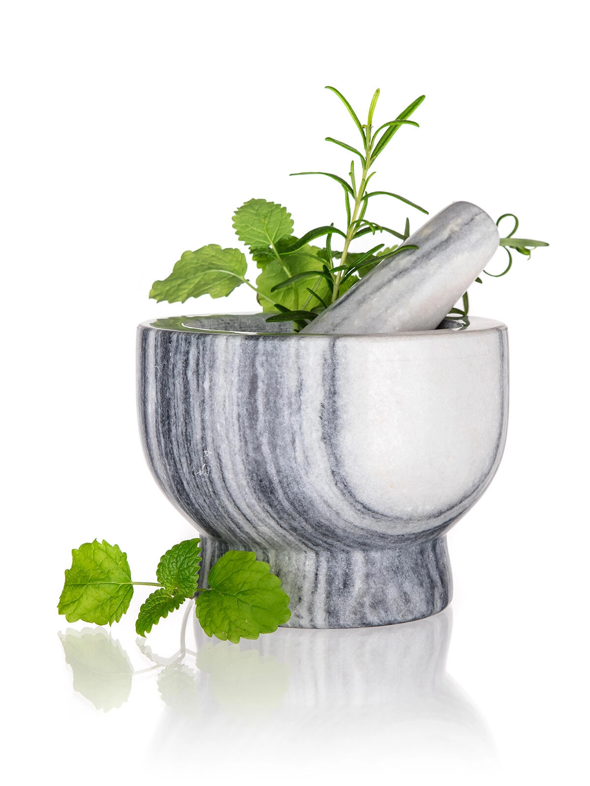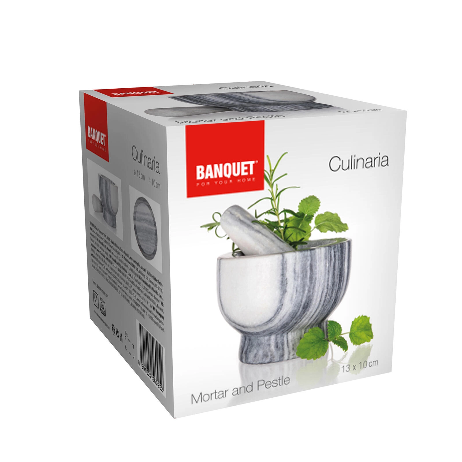 Descoperiți metoda tradițională de preparare a condimentelor și ierburilor cu mojarul de marmură Culinaria. Piatra naturală asigură rezistență ridicată, greutatea optimă pentru stabilitate și o mărunțire ușoară a ingredientelor fără pierderea aromei. Condimentele proaspăt zdrobite vor evidenția gustul preparatelor și le vor oferi o aromă autentică.