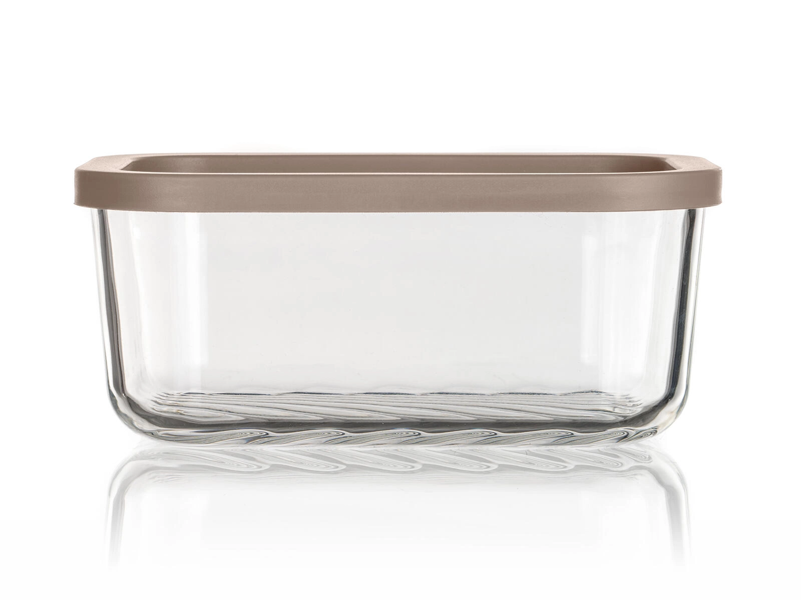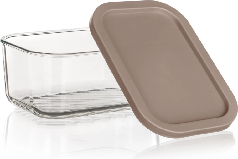 Borcanul din sticlă Wave 0,7 l este o soluție universală pentru depozitarea zilnică a mâncării. Sticla clară permite verificarea rapidă a conținutului, iar capacul solid din plastic, în nuanța latte, închide sigur preparatul și îi păstrează prospețimea. Datorită intervalului termic de la −12 °C la +220 °C, puteți în siguranță să congelați, coaceți și încălziți (în cuptor și la microunde întotdeauna fără capac).