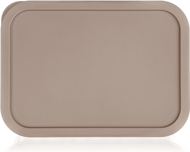 Capacul din plastic, bine fixat, în culoarea latte, asigură o etanșare fiabilă, limitează pătrunderea aerului și ajută la menținerea alimentelor proaspete mai mult timp, acasă și în deplasare.