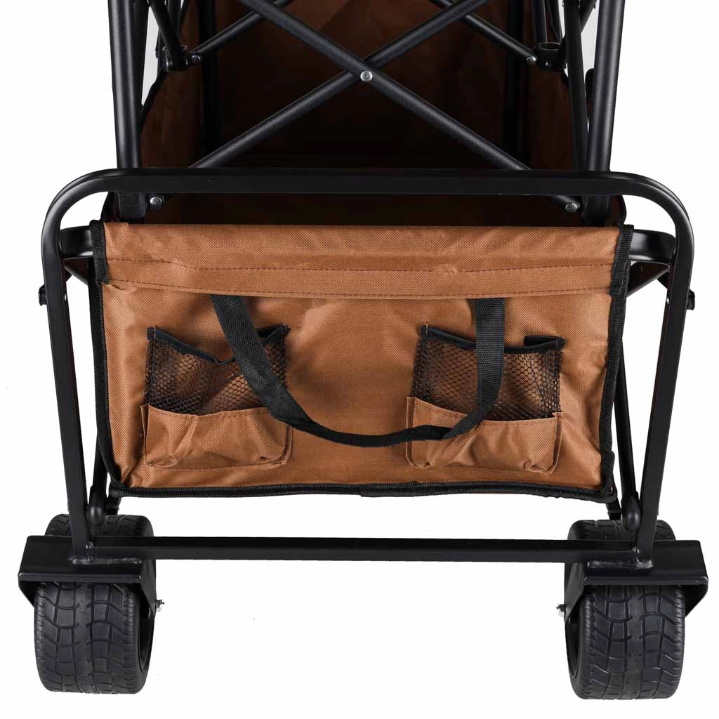 Cu acest cărucior universal veți transporta comod echipamentul pentru plajă, cumpărături sau camping. Construcția robustă din oțel cu țesătură Oxford 600D suportă până la 150 kg, în timp ce roțile mari de 8" tip Tank fac față terenului denivelat. Mânerul telescopic și cadrul pliabil tip foarfecă facilitează manevrarea și depozitarea.