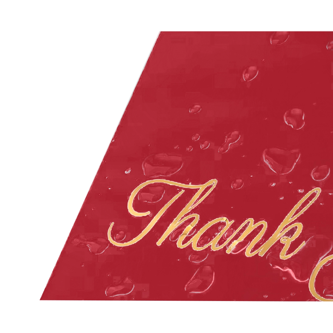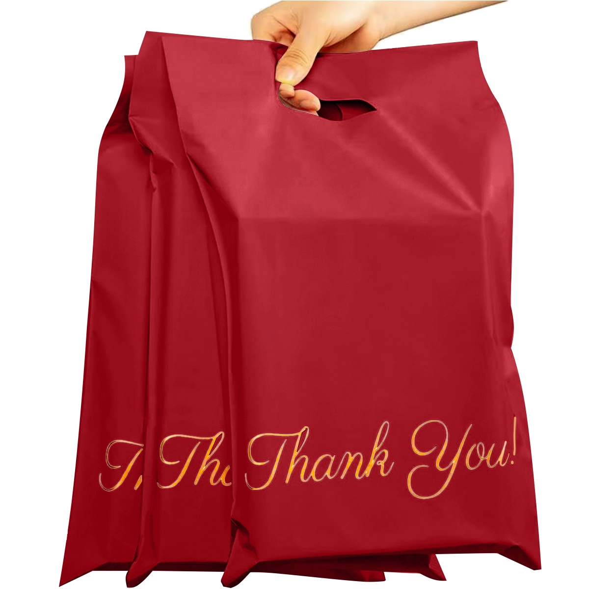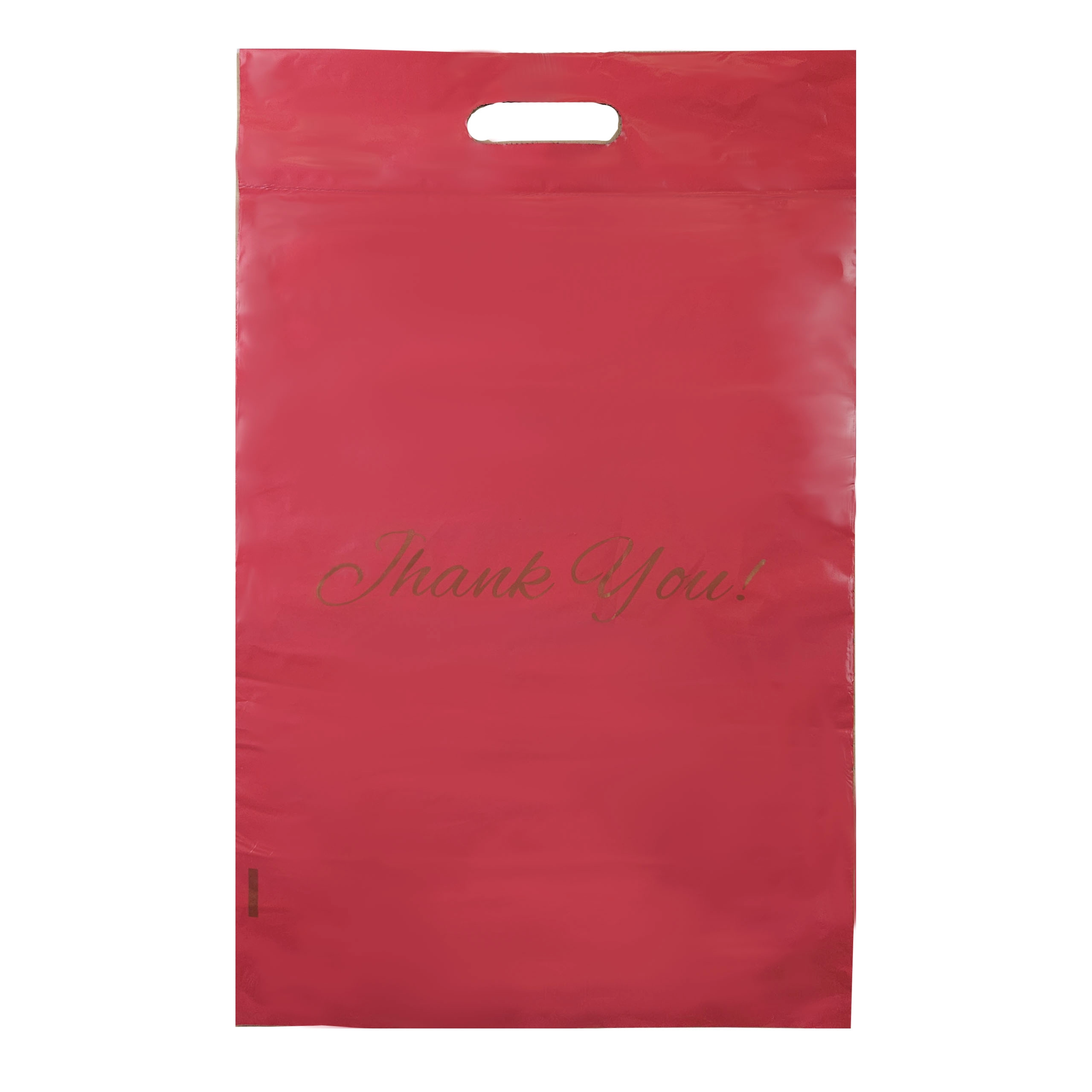 Plicuri de curierat din plastic practice și rezistente, cu mâner decupat, în elegantul colorit roșu, pentru livrarea comodă a coletelor. Realizate din folie LDPE solidă, protejează conținutul împotriva umidității, prafului și deteriorării. Banda autoadezivă asigură închidere sigură și ambalare rapidă. Pachetul conține 50 bucăți în dimensiunea 400 × 500 + 70 mm (mâner) cu inscripția decorativă Thank You.