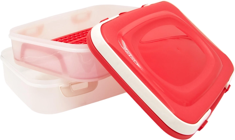 Datorită grilei interioare cu prinderi, conținutul se scoate ușor și curat. Cutia este ideală pentru picnicuri, petreceri în grădină, vizite sau transportul zilnic la serviciu. Se curăță simplu și este potrivită pentru utilizare repetată.