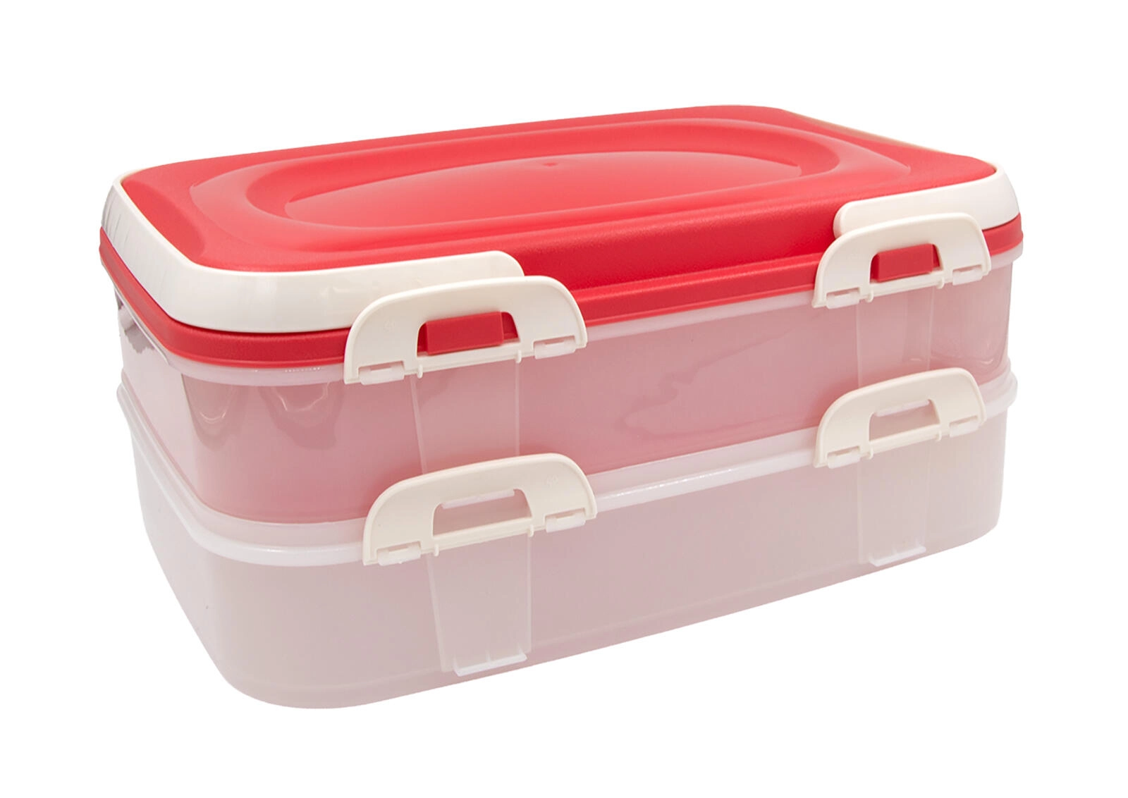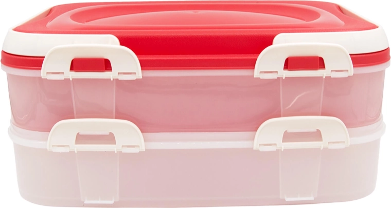 Căutați o cutie practică pentru sandvișuri, prăjituri, fructe sau produse de panificație? Această cutie de transport cu 2 niveluri, cu cleme rezistente și mânere, asigură că alimentele ajung la destinație proaspete și bine închise. Pereții transparenți permit verificarea rapidă a conținutului, iar capacul roz oferă un aspect elegant oricărei mese.