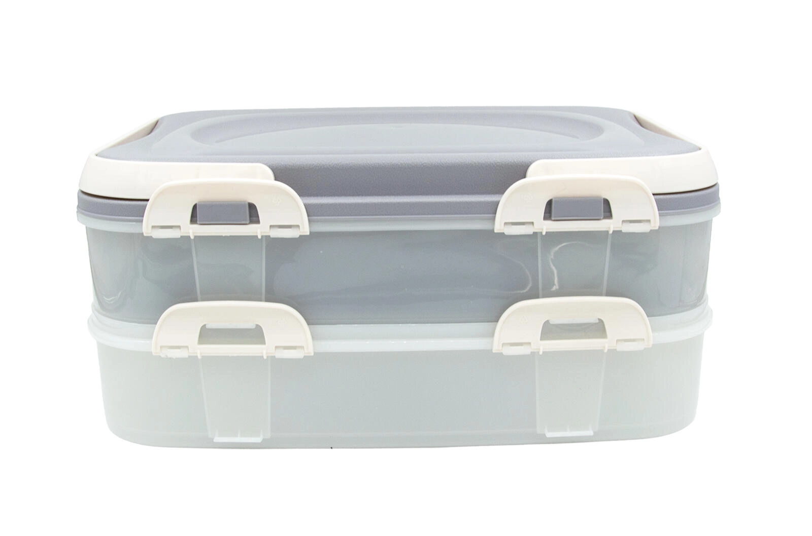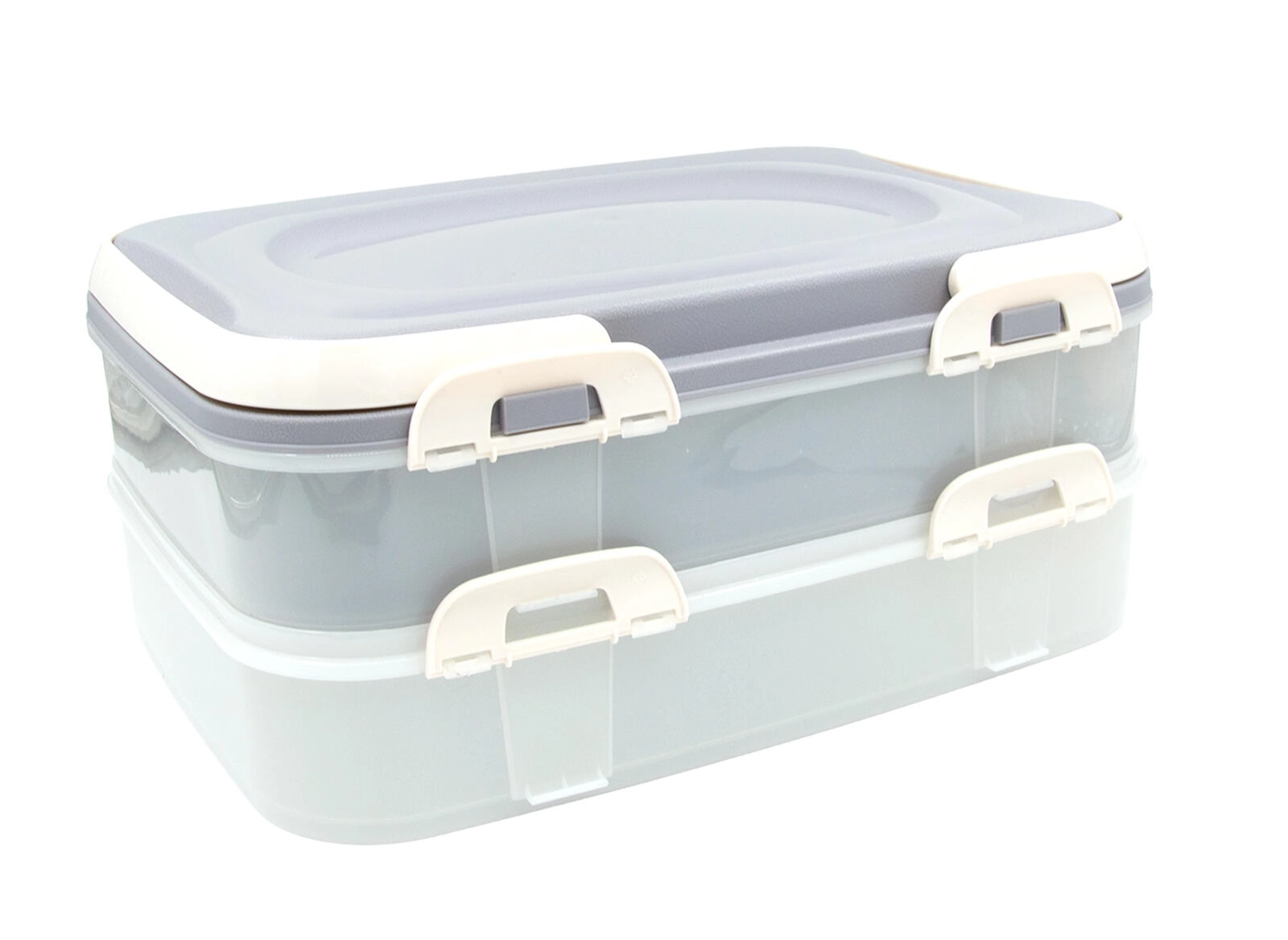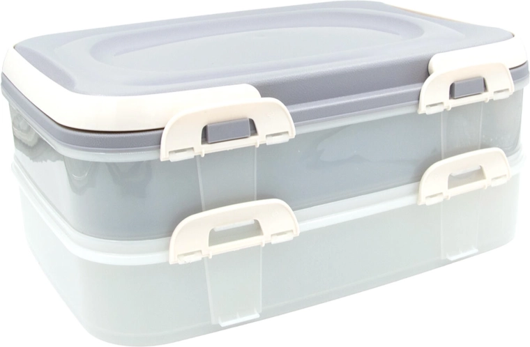 Cutia practică pentru alimente, pe două niveluri, cu un volum de 2 × 7 l, este ideală pentru transport și depozitare. Oferă închidere sigură cu cleme, transport confortabil datorită mânerelor solide și organizare clară datorită grilei interne. Perfectă pentru picnicuri, petreceri în grădină și călătorii.