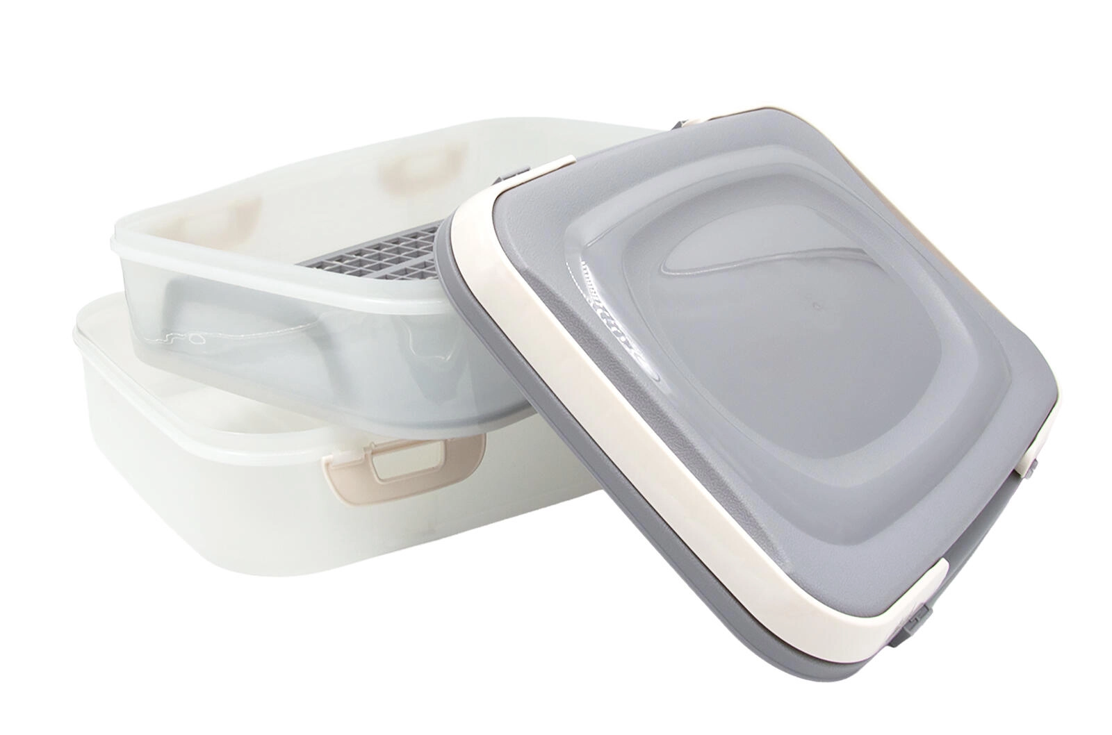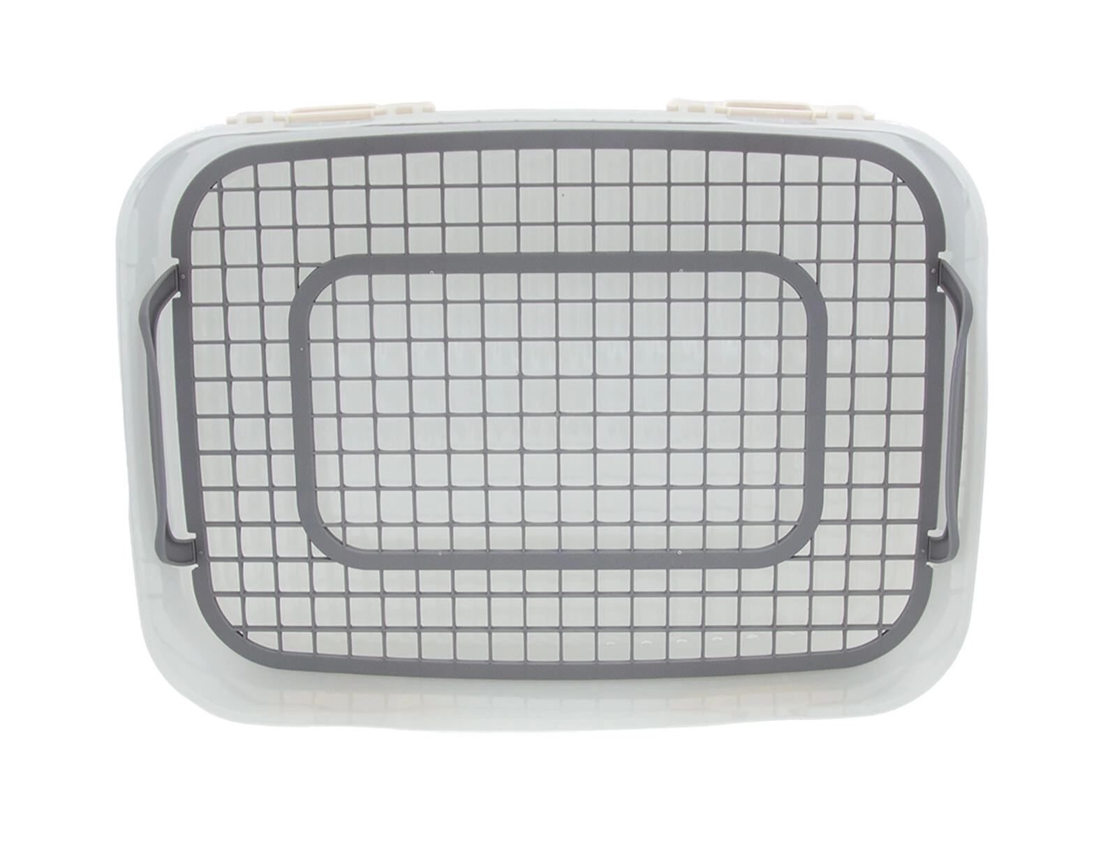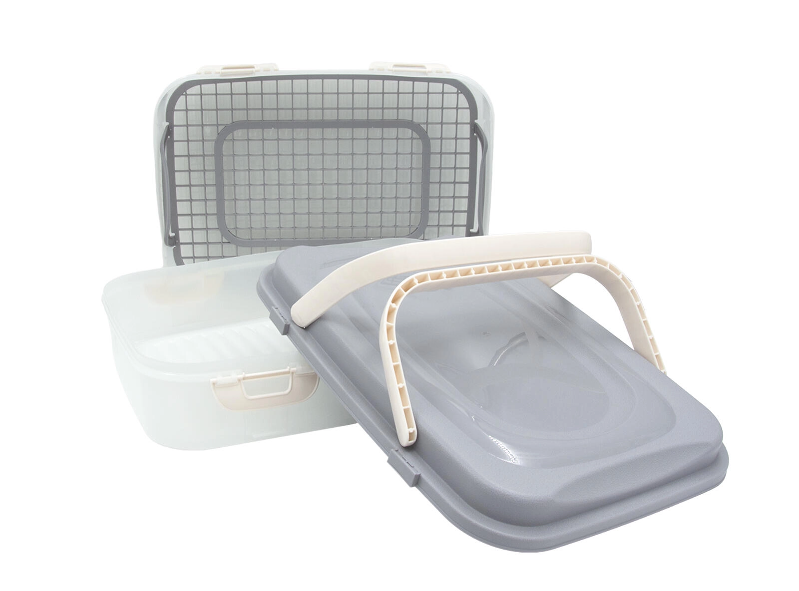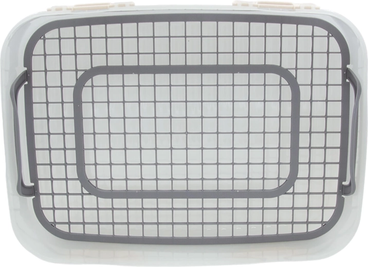 Grila internă integrată, cu mânere, facilitează scoaterea conținutului și menține ordinea. Mânerele practice de pe capac asigură un transport confortabil și sigur. Datorită designului transparent, aveți mereu o vedere clară asupra conținutului.