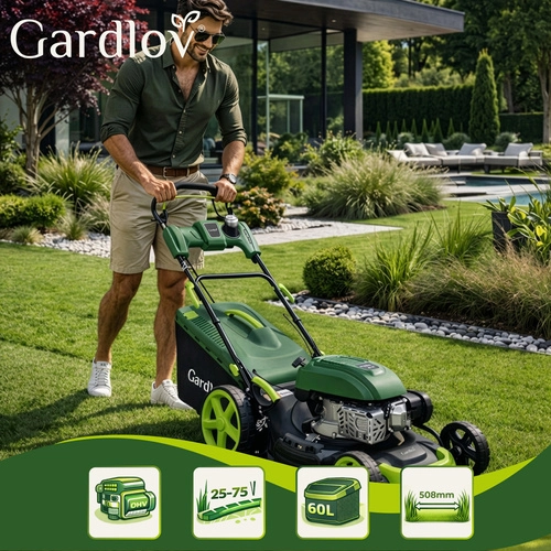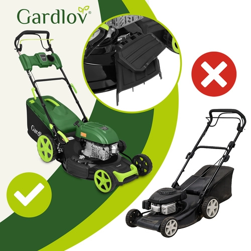 Mașina de tuns iarbă pe benzină GARDLOV DriveXPro cu autopropulsie și lățime de tăiere de 51 cm face față fără efort chiar și gazonului des. Motorul puternic de 196 cm³ / 3,4 kW, sistemul 4-în-1 (colectare, evacuare posterioară și laterală, mulcire) și coșul mare de 60 l accelerează munca și sporesc confortul. Șasiul din oțel rezistent și roțile pe rulmenți asigură o durată de viață îndelungată și manevrare ușoară.