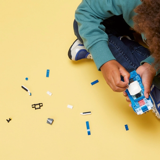 Modelul de mașină de poliție LEGO oferă loc pentru o minifigurină de polițist și detalii realiste pentru joacă dinamică.