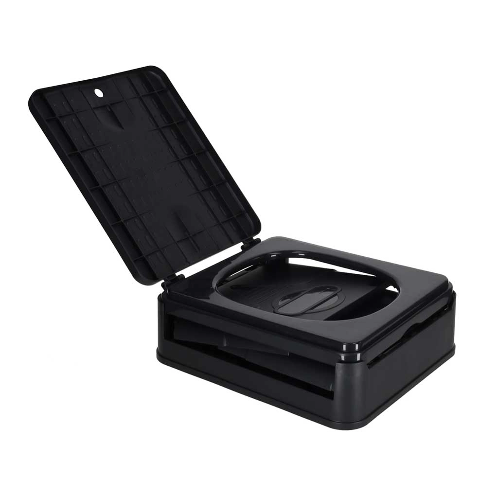 Bucurați-vă de libertate în călătorii cu o toaletă practică pe care o desfaceți în câteva clipe și, după utilizare, o pliați ușor într-o formă compactă. Construcția plastică robustă din PP este rezistentă, se curăță ușor și, în combinație cu săculeții de unică folosință, asigură curățenie maximă fără contact cu murdăria.