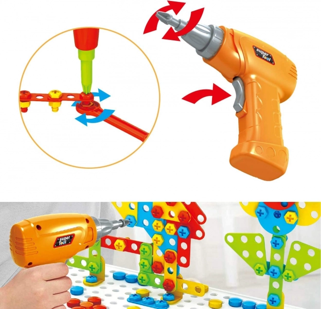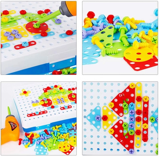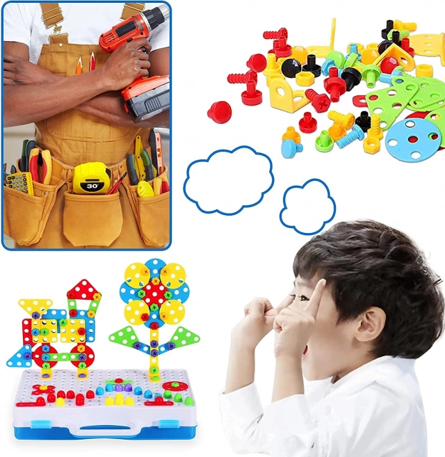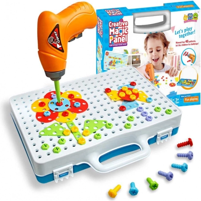 Jocul constă în aranjarea diferitelor forme și imagini. Elementele selectate sunt înșurubate cu o bormașină în placa valizei, care are găuri speciale. Bormașina este alimentată de baterii, permițând înșurubarea și desșurubarea. Culorile vii și contrastante atrag atenția copilului și cresc interesul pentru jucărie.