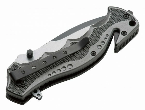 Mânerul ergonomic din aluminiu eloxat, în culoare gri antracit, este rezistent, ușor și se potrivește excelent în mână. În partea inferioară găsești un spargător de geamuri integrat și un tăietor pentru centuri de siguranță, care economisesc secunde prețioase la intervenție. Clema de buzunar permite purtare comodă și sigură.
