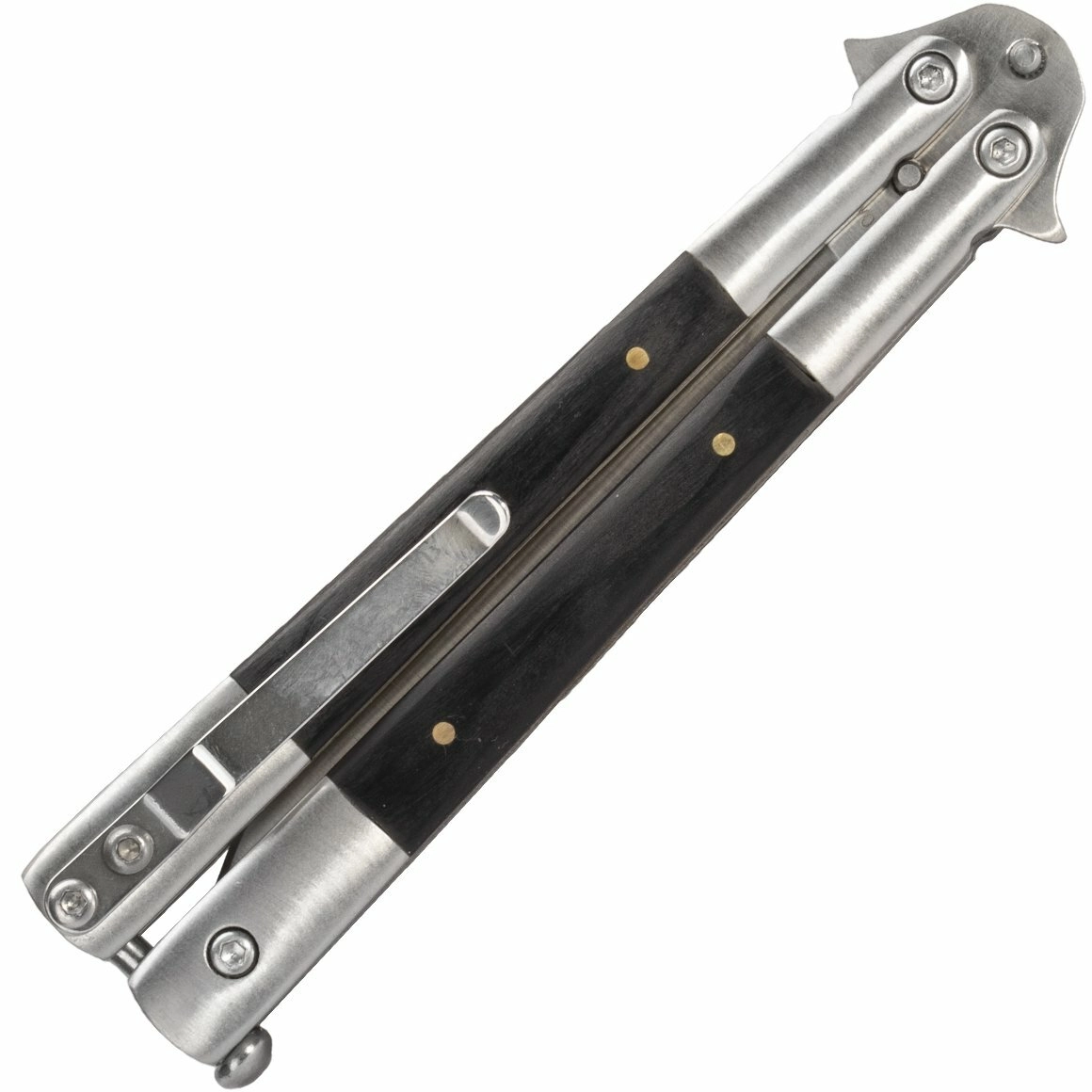 Lemn compozit pentru priză confortabilă, întărituri din inox pentru rezistență și clip pentru purtare EDC comodă.
