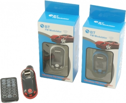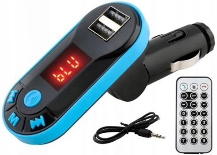 Transmițător FM, Bluetooth, cu telecomandă – Albastru-negru
