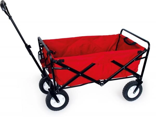 Cărucior pliabil cu patru roți, practic, pentru grădină, vacanță și gospodărie. Oferă o construcție solidă, pliere ușoară în dimensiuni compacte și o bene mare de 85 × 50 × 28 cm pentru transport comod al încărcăturii. Ideal pentru transportul încărcăturilor de până la 70 kg în utilizare obișnuită.