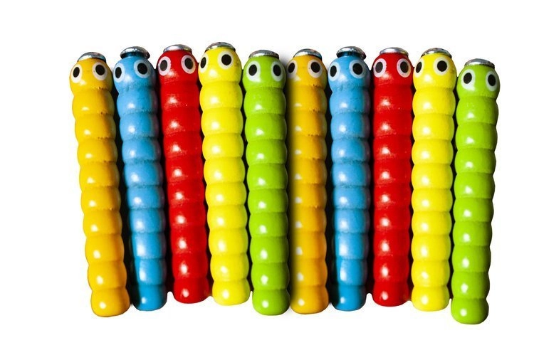 - Set complet: căpșună din lemn, baghetă magnetică și 10 viermișori/omizi
