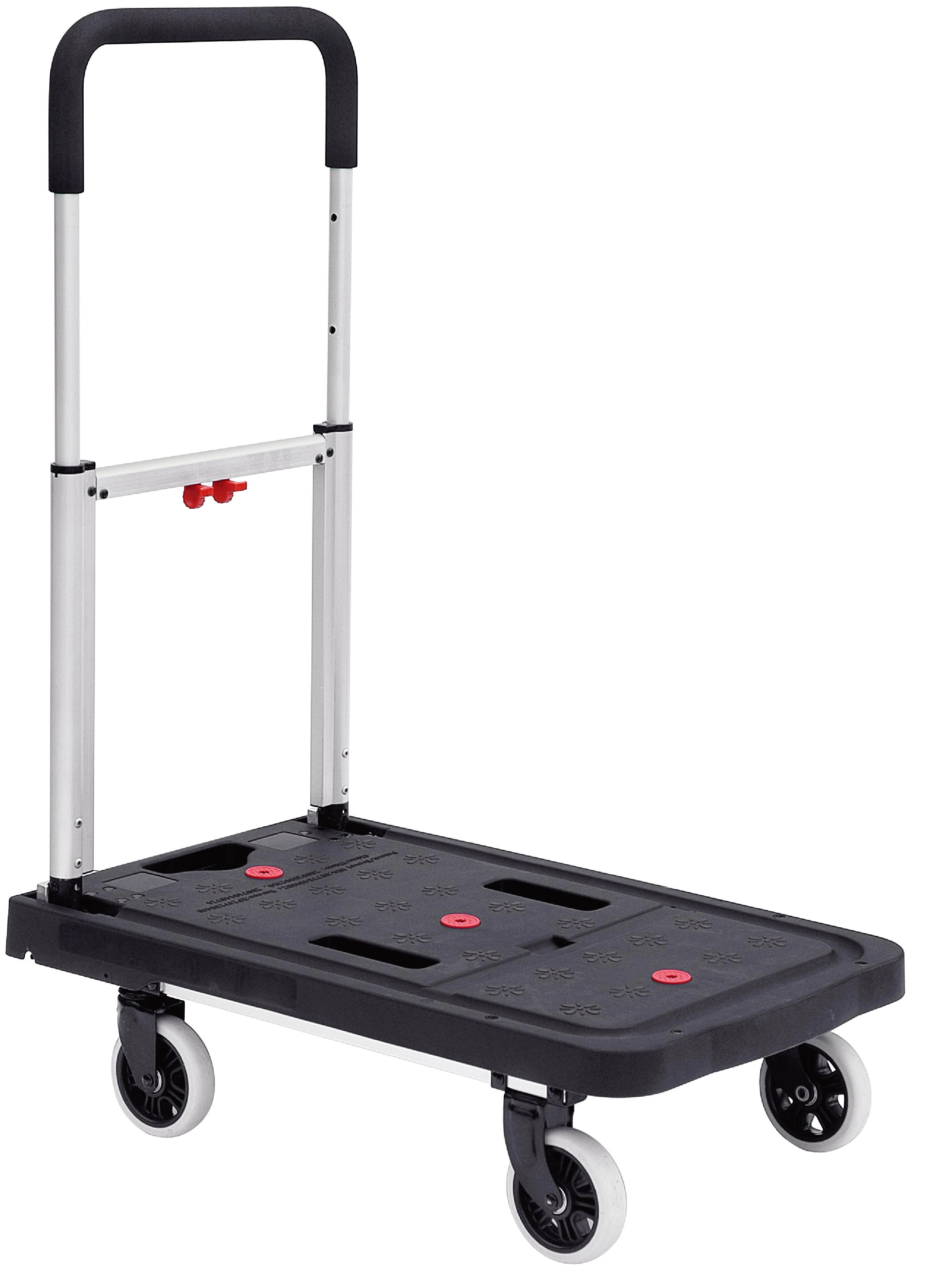Cărucior platformă pliabil practic, cu o capacitate de încărcare de până la 137 kg, ideal pentru casă, atelier și depozit. Datorită plierii rapide dintr-o singură mișcare, inclusiv a roților, economisește spațiu și permite transportul facil. Mânerul telescopic cu 3 poziții asigură manevrare confortabilă, în timp ce platforma de 68 × 41 cm oferă o suprafață stabilă pentru încărcătură.