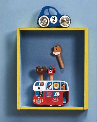 Mașinuța albastră Vilac este realizată din lemn lăcuit, asigurând durabilitatea și în același timp aspectul elegant. Are roți metalice cauciucate, care oferă un mers lin și silențios. Datorită soluției speciale a axei, mașinuța este capabilă să vireze stânga și dreapta, ceea ce adaugă dinamism jocului.