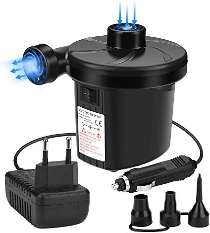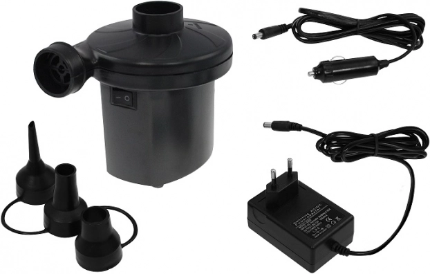 Este disponibilă și funcția de inversare, astfel că vă ajută și la golirea aerului din obiectele voluminoase. Pompa include conectori pentru priza auto. Sunt disponibile și 3 duze diferite și un debit de aer de 250 l/min.