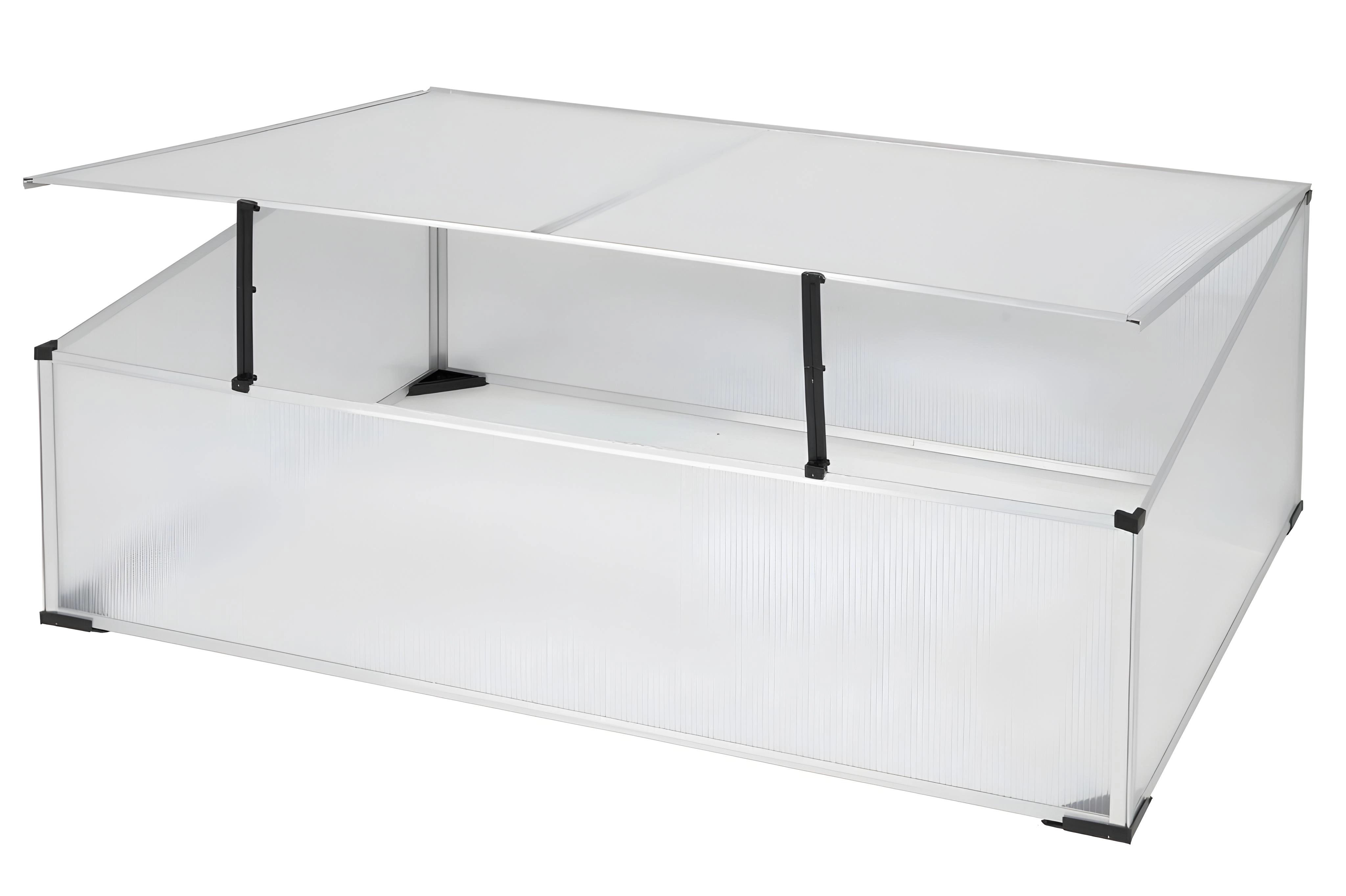 Răsadnița practică din policarbonat este ideală pentru pre-cultivarea legumelor, ierburilor aromatice și florilor. Cadrul stabil din aluminiu rezistă la coroziune, iar panourile ușoare din policarbonat cu filtru UV protejează plantele împotriva arsurilor și a frigului. Datorită dimensiunilor 100 × 60 × 40/30 cm, este potrivită pentru straturi, terase și grădini mai mici.