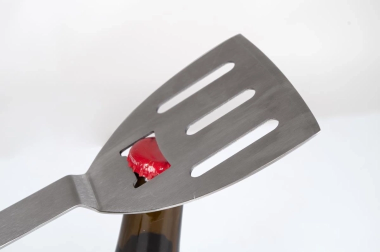 Capul fantezat ajută la scurgerea grăsimii, iar desfăcătorul de sticle integrat e un plus binevenit la fiecare grătar.