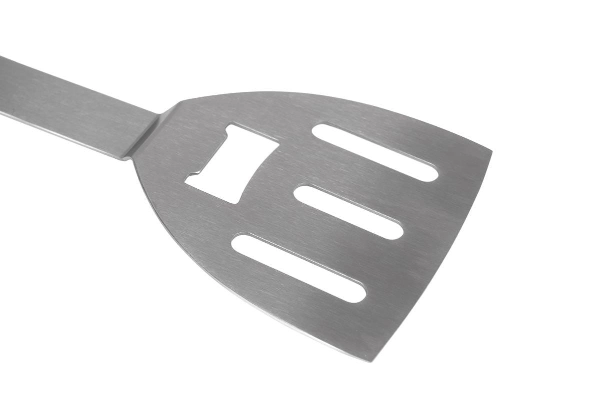 Fără căutări interminabile după fiecare unealtă lângă grătar. Acest set multifuncțional 5‑în‑1 pentru grătar reunește tot ce ai nevoie pentru pregătirea fără întreruperi a cărnii, legumelor și burgerilor – de la întors și înțepat până la ungerea cu marinadă și deschiderea sticlelor.