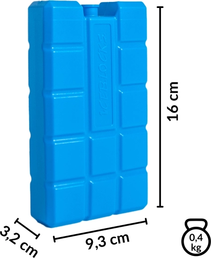 Pachetul frigorific practic, cu volum de 400 ml, menține alimentele și băuturile proaspete mai mult timp în excursii, la picnic sau la mare. Este suficient să îl congelați câteva ore și să îl introduceți în frigiderul auto sau în lada frigorifică turistică. Pachetul este sigur pentru contactul cu alimentele, rezistent la șocuri și presare și potrivit pentru utilizare repetată.