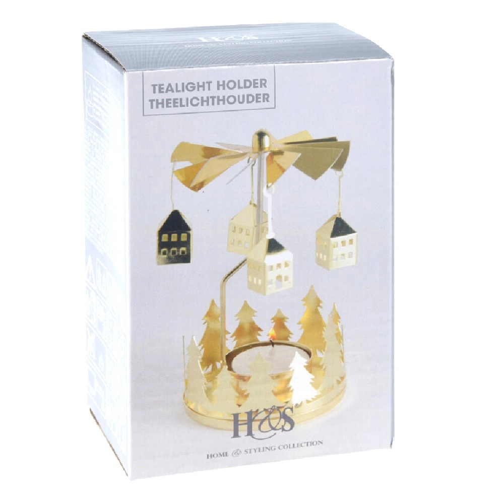 Împodobiți-vă casa cu un carusel rotativ încântător, care se rotește singur datorită căldurii lumânării tip pastilă și luminează spațiul cu un joc de lumini și umbre. Finisajul auriu arată elegant și se potrivește perfect atât interioarelor moderne, cât și celor tradiționale.