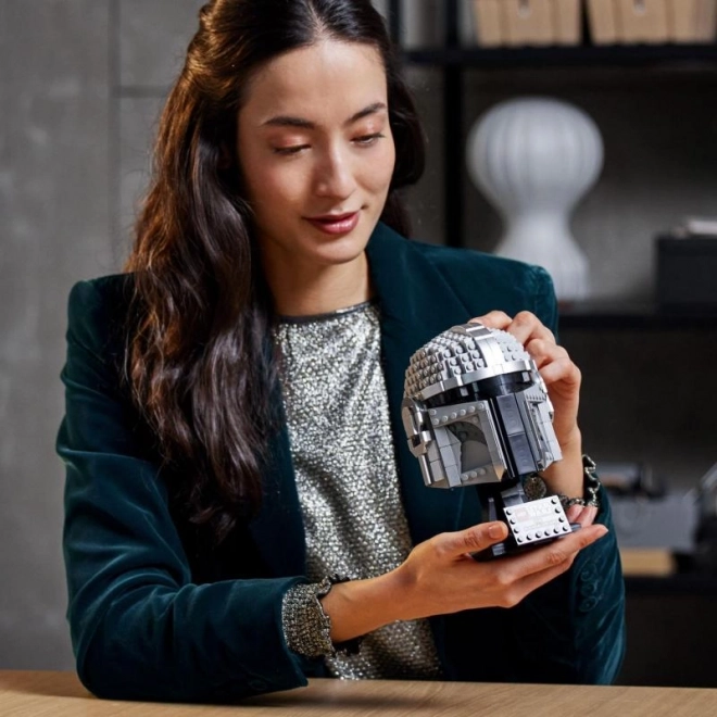 Piesele lăcuite și nuanțele de gri reproduc fidel aspectul metalic al beskarului și redau cu precizie contururile căștii Mandalorianului.