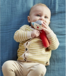 Zornăitoarea este confecționată din bumbac organic certificat GOTS și colorată cu vopsele pe bază de plante, fiind blândă cu pielea copilului și cu natura. Excelentă pentru joaca zilnică și ca distracție în călătorii.