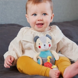 Ursulețul cu inel pentru dinți Petit Collage se remarcă prin calitatea execuției și materialele blânde. Combină țesătura moale cu un inel din lemn pentru a oferi bebelușilor confort la îmbrățișare și alinare la ros. Datorită texturilor și culorilor atent gândite, susține dezvoltarea tactilă, vizuală și motrică încă din primele zile.