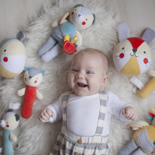 Producția sustenabilă este susținută de utilizarea bumbacului organic GOTS, a materialelor reciclate și a coloranților netoxici. Jucăria este ușoară, ușor de apucat și sigură pentru bebeluși 0+, ideală pentru cărucior, pătuț și pentru acasă.