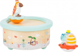Cutia muzicală cu elefant și papagal este un accesoriu magic pentru orice cameră de copii. Figurinele din lemn și plastic sunt atașate în siguranță în partea de sus a cutiei cu ajutorul magneților, permițându-vă să le separați ușor și să le folosiți ca jucării individuale. Această cutie:
