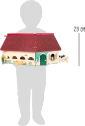 Descoperă ferma unde imaginația nu are limite! Această mare fermă pentru copii oferă o experiență de joc realistă datorită detaliilor atent concepute. Acoperișul rabatabil asigură un acces facil în interior, în timp ce ușile glisante ale boxelor oferă adăpost pentru vaca pestriță și porcul roz. Spațiul fermei este proiectat să cuprindă și un tractor de jucărie.