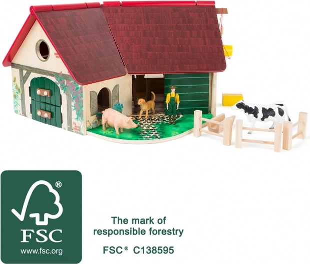 Fermierul este realizat din lemn 100% certificat FSC, ecologic și sigur pentru copii. Acest lemn provine din păduri gestionate în așa fel încât să protejeze planeta noastră.