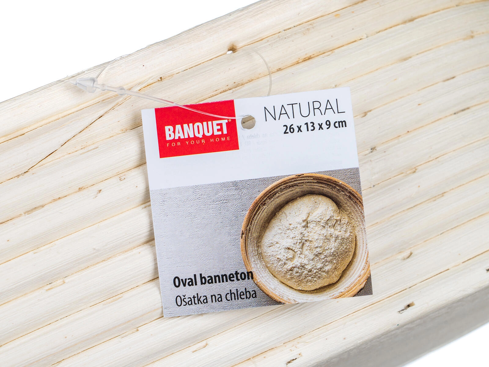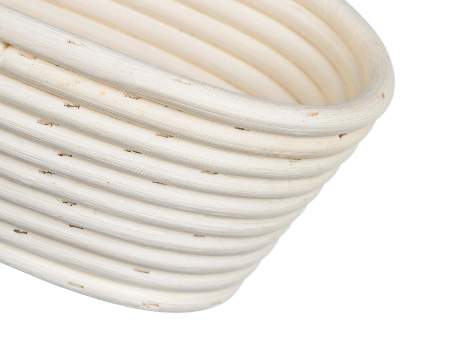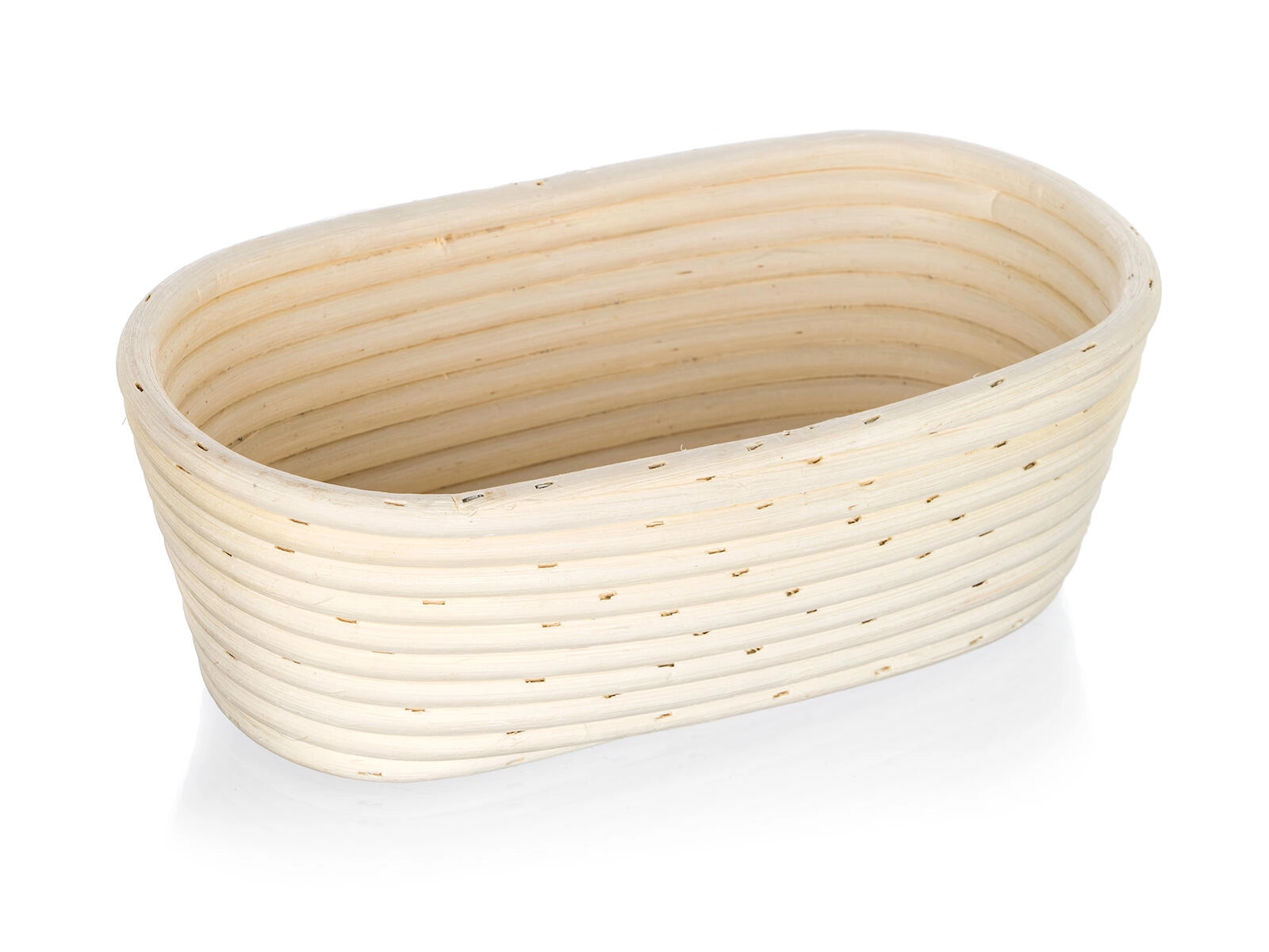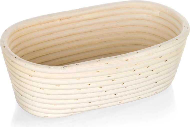 Descoperiți un instrument de încredere pentru dospirea pâinii. Acest coș oval din ratan natural (peddig) cu dimensiunile 26 × 13 × 9 cm oferă aluatului sprijinul necesar, susține dospirea uniformă și creează striațiile decorative tipice și modelul cu spic pe pâine. Datorită structurii respirabile a ratanului, umiditatea este evacuată mai bine, ceea ce ajută la obținerea unei coji crocante și aurii.