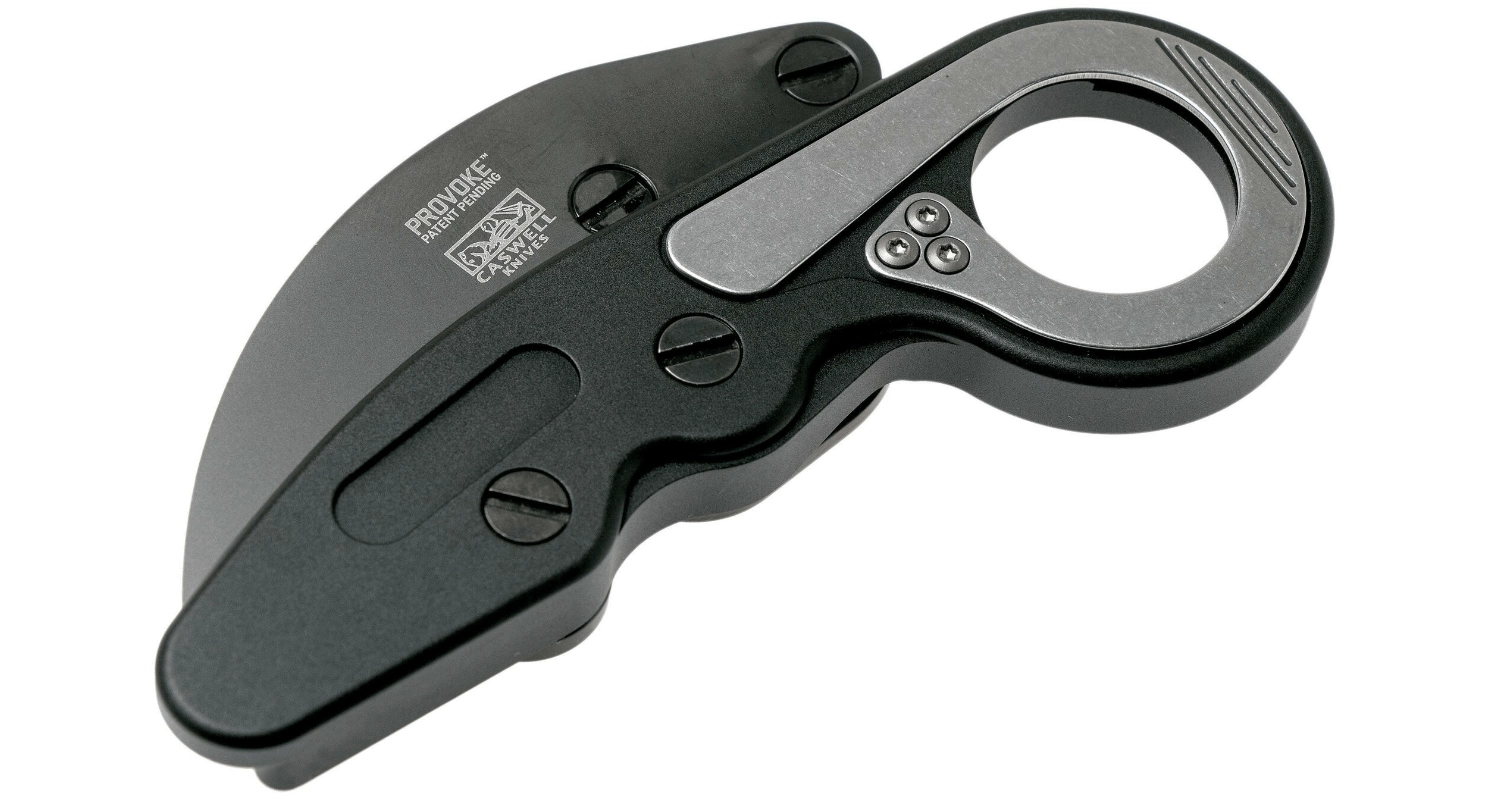 Karambitul inovator CRKT Provoke Black creat de designerul Joe Caswell îmbină autoapărarea tactică cu practicitatea EDC. Dispune de o lamă curbată din oțel D2 cu finisaj din titan mat, de culoare neagră, și de un mâner robust din aluminiu 6061‑T6 cu clip de buzunar. Datorită mecanismului cu pârghii unic, se deschide cu o singură mână și se blochează în siguranță.